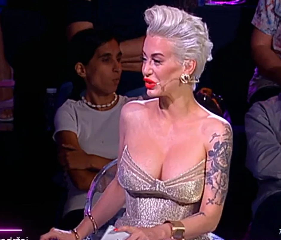 Naime, voditeljka je za ovu priliku odlučila da obuče glamuroznu zlatnu haljinu, koja je imala ogroman dekolte i stavila je njeno bujno poprsje u prvi plan, te gledaoci nisu mogli da odvoje pogled sa malih ekrana.