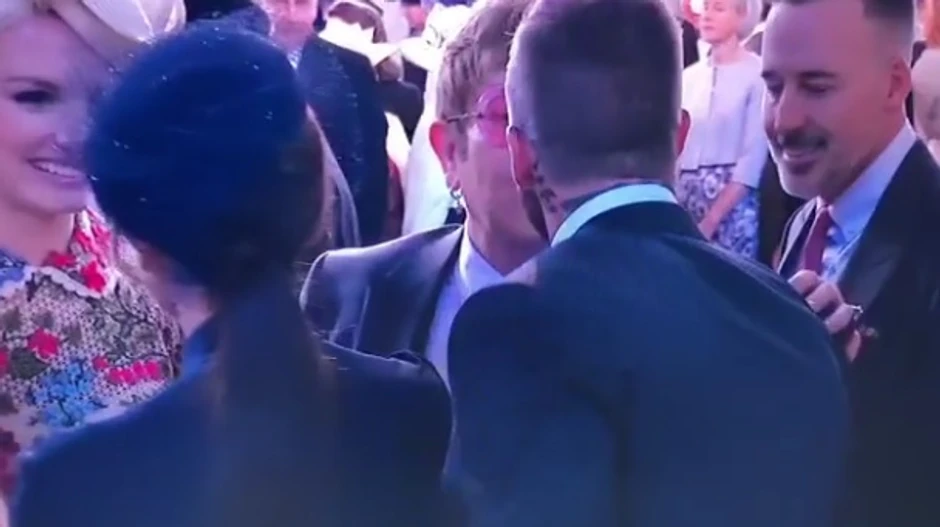Dejvid Bekam, koji je na kraljevsko venčanje došao u društvu supruge Viktorije, u crkvi se među prvima pozdravio sa slavnim muzičarem Eltonom Džonom.