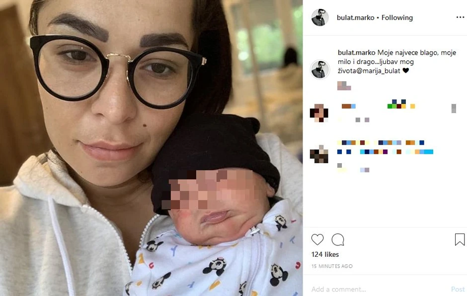 Supruga pevača Marka Bulata porodila se 30. marta, i na svet donela dečaka. Sada, Mesec dana od porođaja ona se pohvalila fotografijom na kojoj u rukama drži sina.