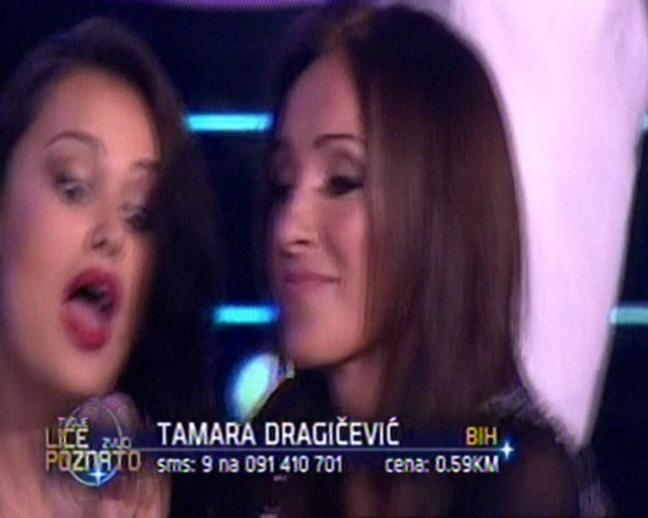 Pevačica Slađana Delibašić i Vesna Đogani, koju je večeras u emisiji "Tvoje lice zvuči poznato" imitirala glumica Tamara Dragičević. "potukle" su se na sceni.
