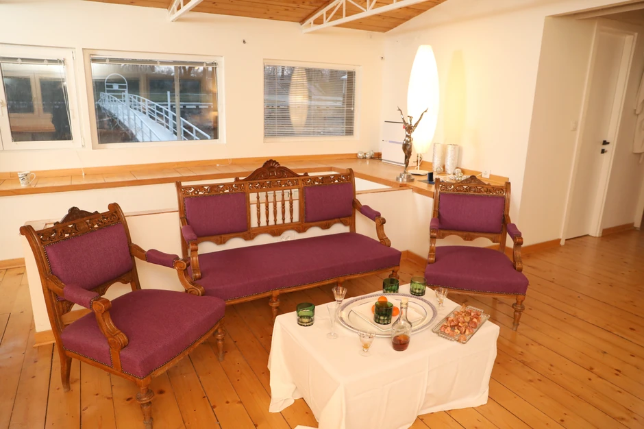 Prostrana trpezarija, koja skoro da je u nivou reke jer kroz prozor vidite vodu čiji tok smiruje, glavno je mesto okupljanja prijatelja Jugovićeve.
