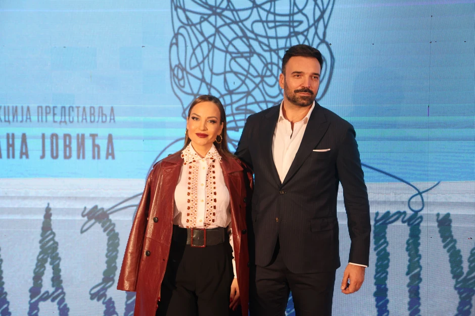 Pevačica Jelena Tomašević pojavila se u stajlingu sa etno detaljima, a društvo joj je pravio suprug, glumac Ivan Bosiljčić, u elegantnom odelu.