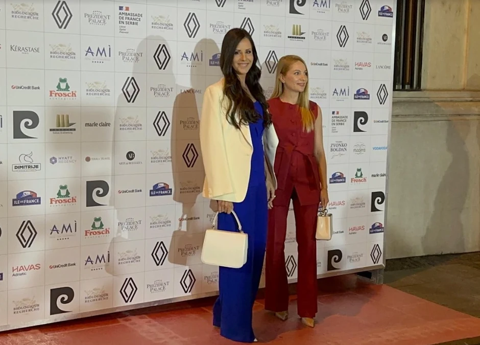 Ana Stanić blistala je u crnoj haljini koja prati liniju tela, dok je supruga predsednika Srbije Aleksandra Vučića, Tamara Vučić za ovu priliku izabrala plavi kombinezon sa sakoom šampanj boje.