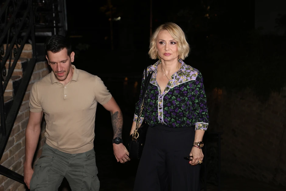 Sanja Vučić je ponela odevnu kombinaciju koja je istakla njen dekolte, a denser Ivan Gavrilović je bio u kežual izdanju, u majici i patikama.