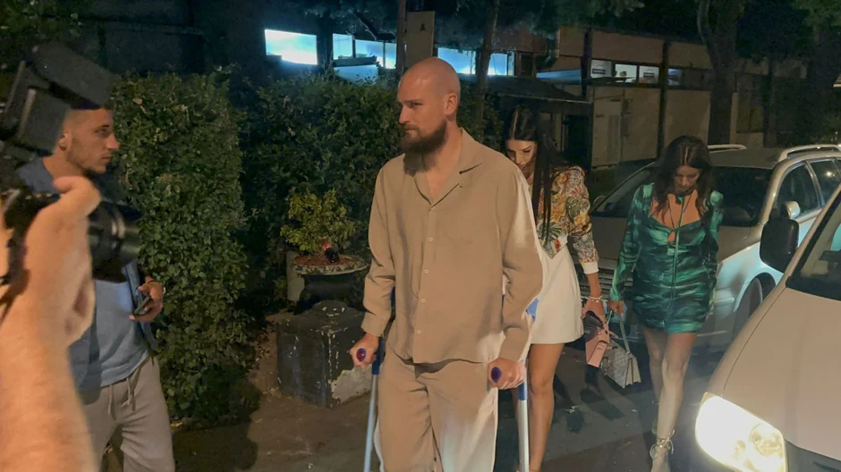 Predrag Rajković, koji trenutno izgra u Emiratima, došao je na štakama na nastup, a u stopu ga je pratila žena Ana.