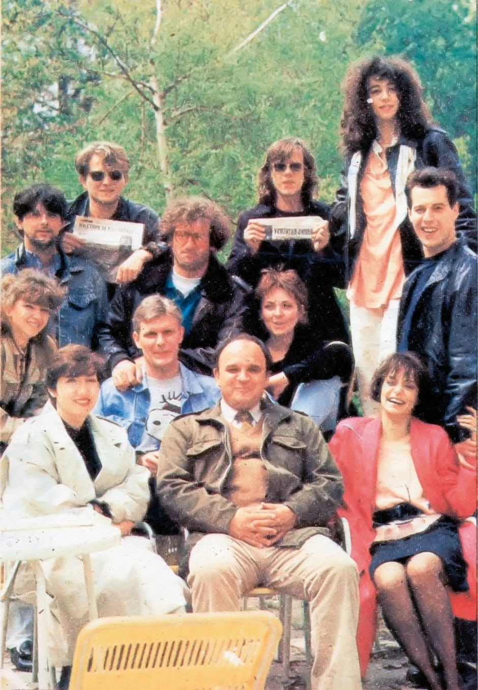 Na slici su u prvom redu Vesna Stanojević, profesor Jevtović i Tatjana Venčelovski. Iza njih sede Mirjana Joković, Dragan Petrović Pele i Vesna Trivalić, a u poslednjem redu prepoznaćete Milorada Mandića Mandu, Dragana Bjelogrlića, Bodu Ninkovića, Žiku Todorovića, Dudu Stojanović i Darka Tomovića.