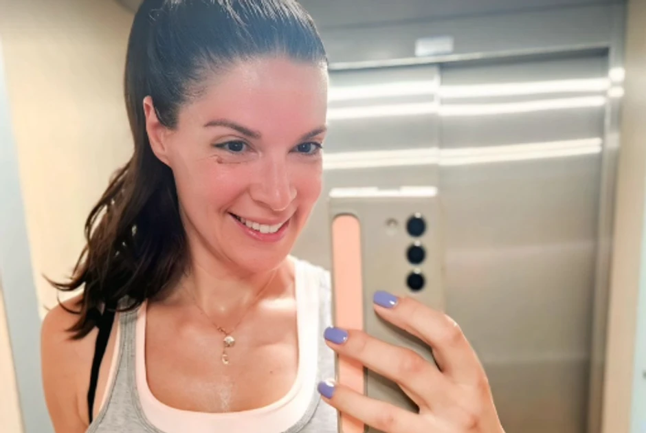 Na prvom slici je vidimo u šortsu i majici gde je samo pokazala svoje izdanje za teretanu, a kada je završila sa vežbanjem uslikala se u istom liftu samo što je tada bila cela u znoju, ali osmeh nije skidala sa lica.