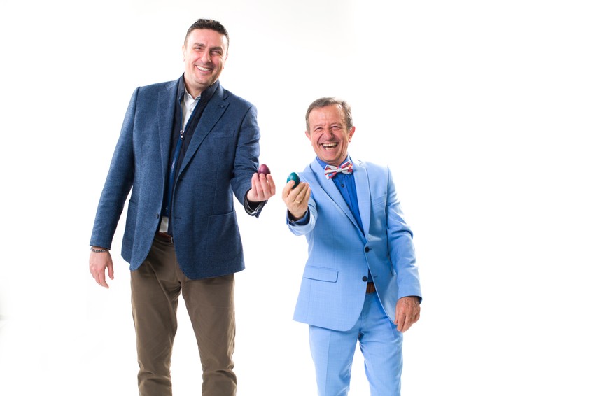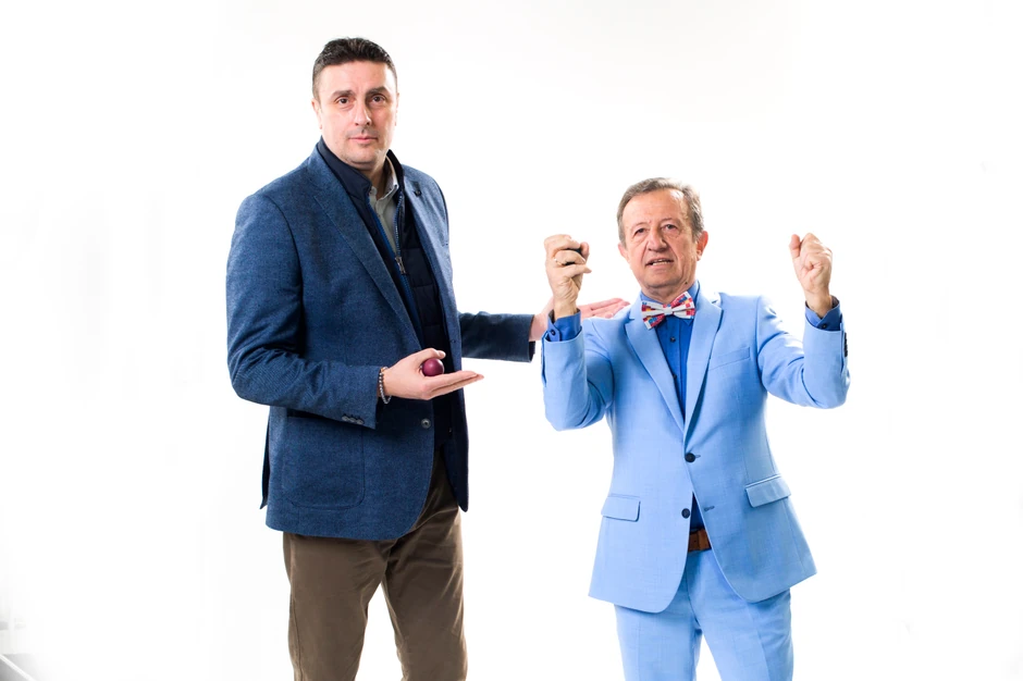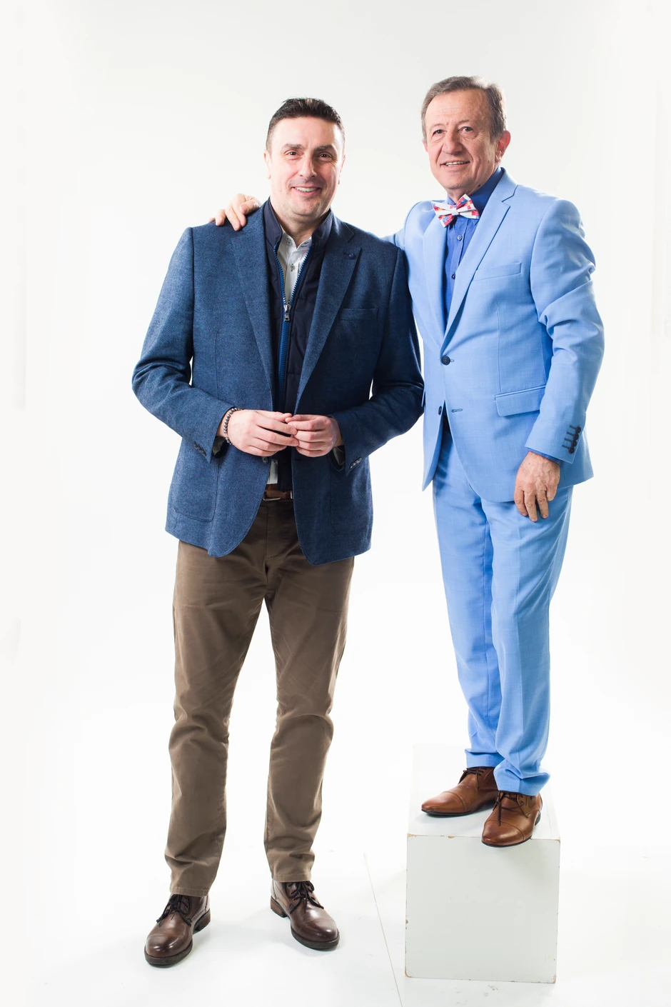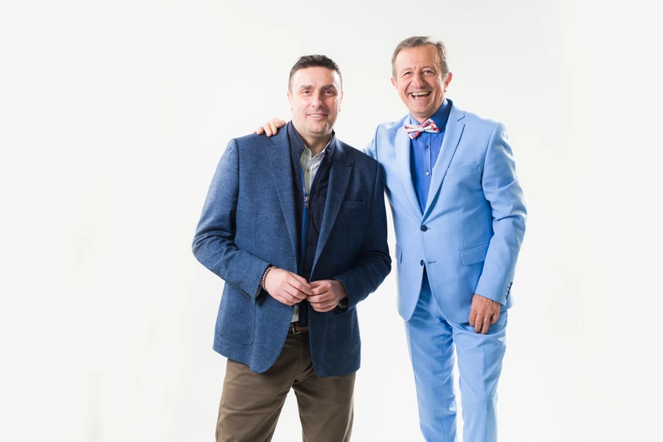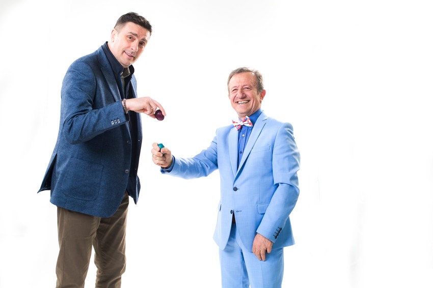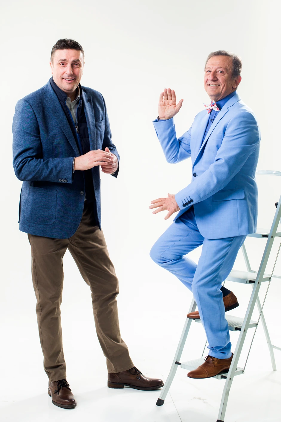 Voditelji „Šarenica“ na različitim frekvencijama razliku u visini na snimanju za „Scenu“ prevazišli su merdevinama, a za naš magazin otvoreno su pričali o konkurenciji, porodici i kako se Uskrs slavi u njihovom domu probleme sa visinom rešili su pomoću stolice na koju je Žika stao i tako dobio na visini.
