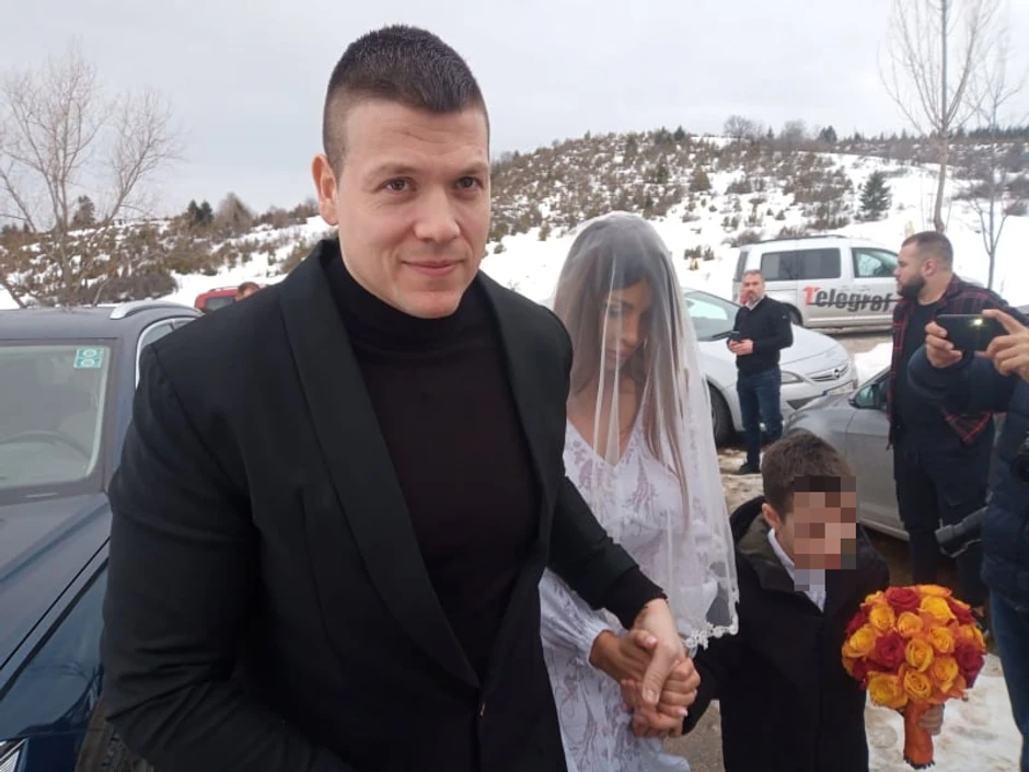 Mladenci su na venčanje krenuli iz etno sela u kojem su odseli. Jelena Đuričanin na sebi ima belu čipkanu venčanicu, dok na glavi nosi veo, a Sloba je odabrao klasično crno odelo.