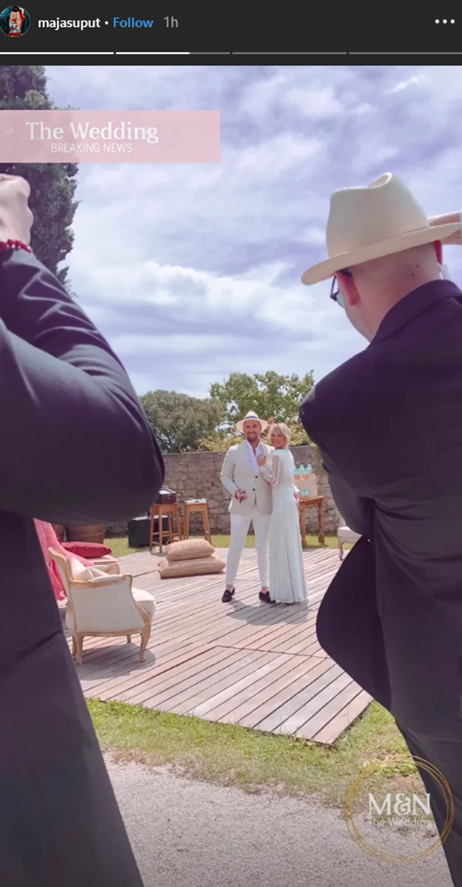 Maja je putem društvenih mreža objavila i prve fotografije sa venčanja, te kako izgleda u beloj venčanici. Njen partner se odlučio za svetlo odelo, a na glavi ima šešir.