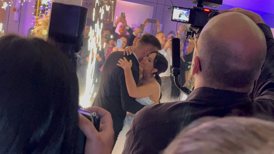 Mladoženja je mladu čvrsto držao, dok su ih prisutni opkolili na podijumu i pratili svaki njihov korak.
