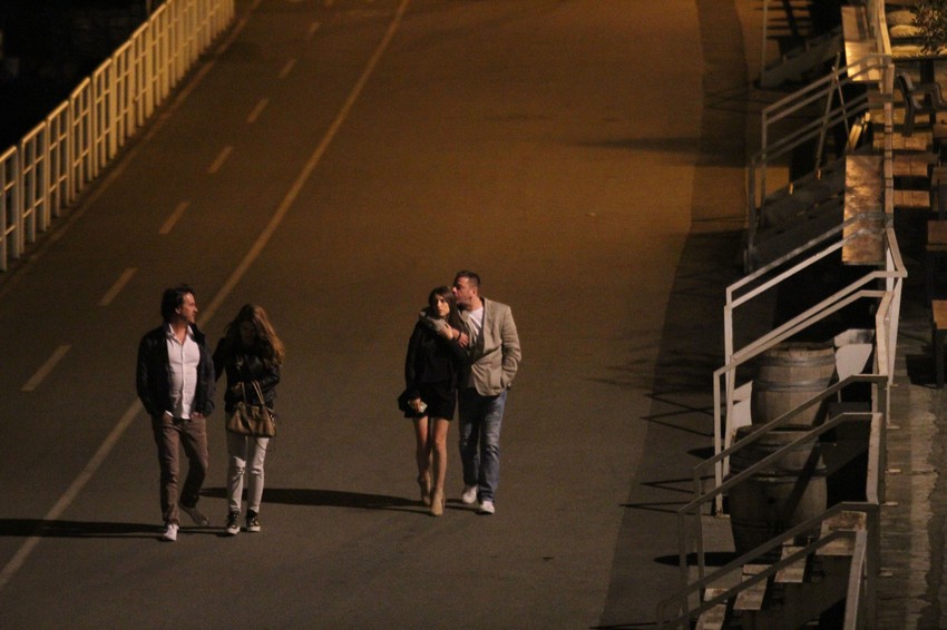 Pevač se u međuvremenu opustio, pa je, svestan da nema previše svedoka oko sebe pošto je bilo kasno, čvrsto zagrlio 14 godina mlađu dragu i zaštitnički je poljubio u čelo, a potom su se uhvatili za ruke i krenuli ka taksiju. Ipak, sve to nije promaklo oku „Blicovog“ fotoreportera.