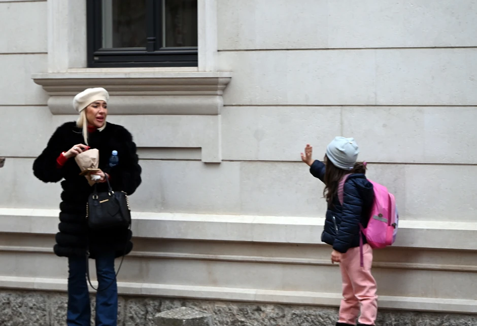 Devojčica je na ramenima imala roze ranac, dok je majka bila u budni.