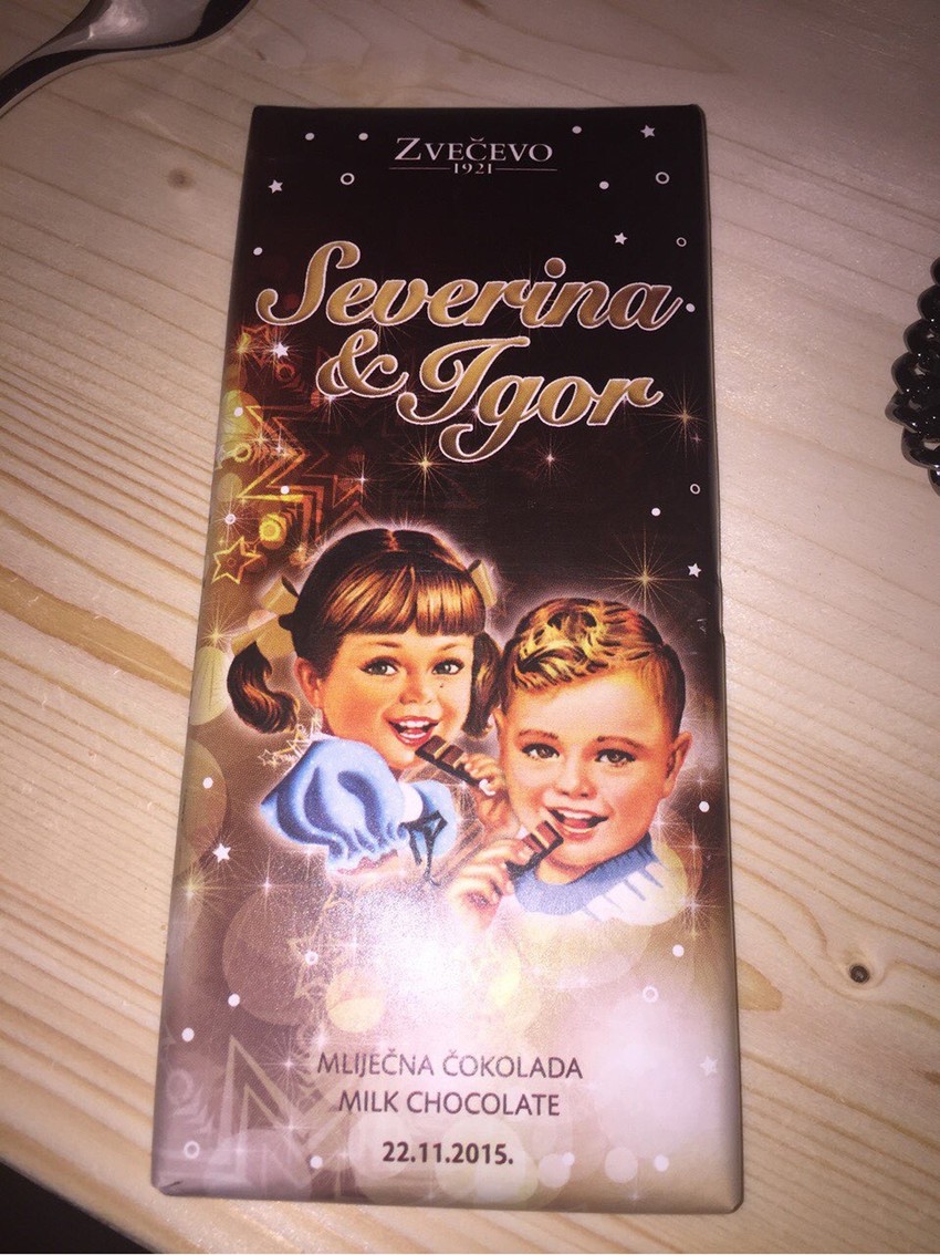 Mladenci su se potrudili da njihov dan venčanja svima ostane u lepom sećanju, te su želeli da razni detalji budu obeleženi njihovim imenima. Jedna od najinteresantnijih stvari bila je čokolada na kojoj pišu imena budućih supružnika.