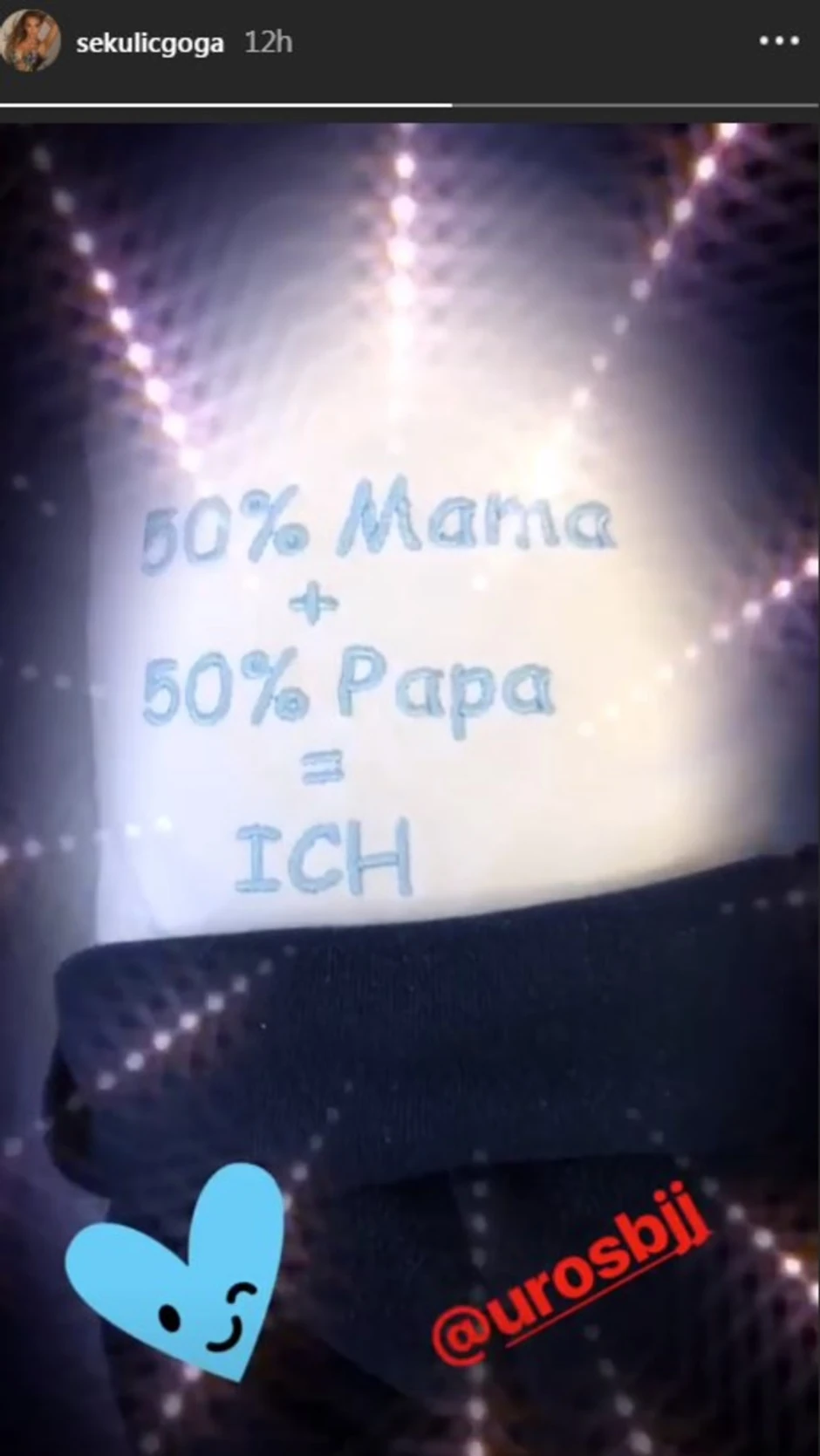 - 50% mama + 50% tata = ja - napisala je Goga na nemačkom jeziku.