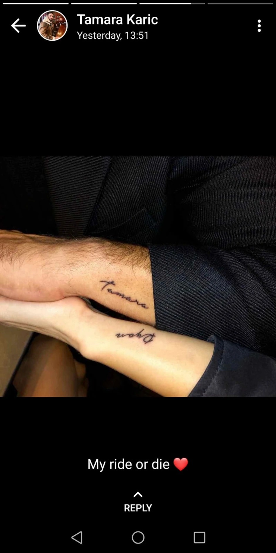 Njih dvoje nedavno su uradili simbolične tetovaže - Tamara je istetovirala njegovo ime, dok je Rajan istetovirao njeno.
