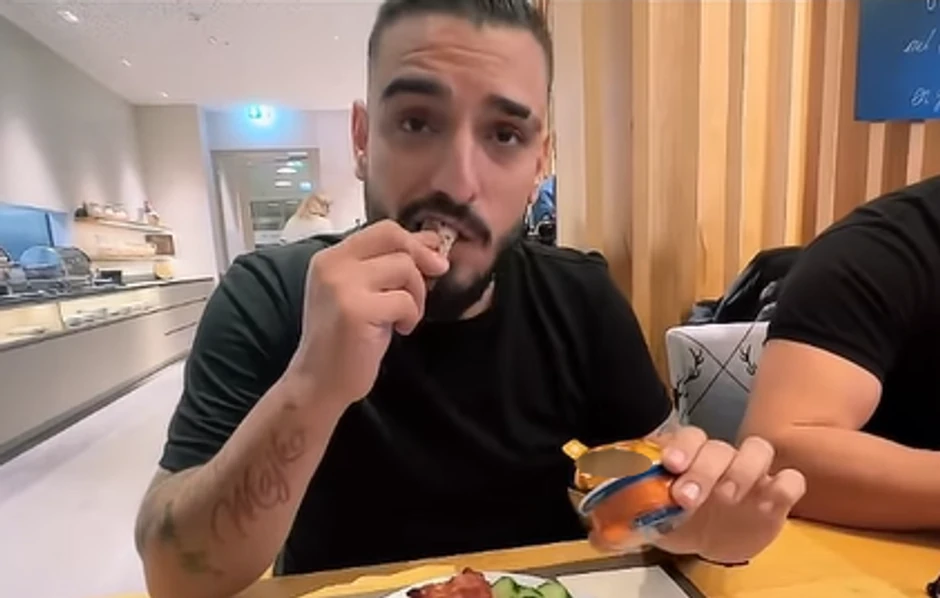 Naime, folker je sedeo za stolom, dok je ispred njega bio veliki tanjir sa različitim salatama i šunkom, a Darko je navalio na paštetu sa hlebom, te nije krio koliko voli da je jede i koliiko mu je ukusna.