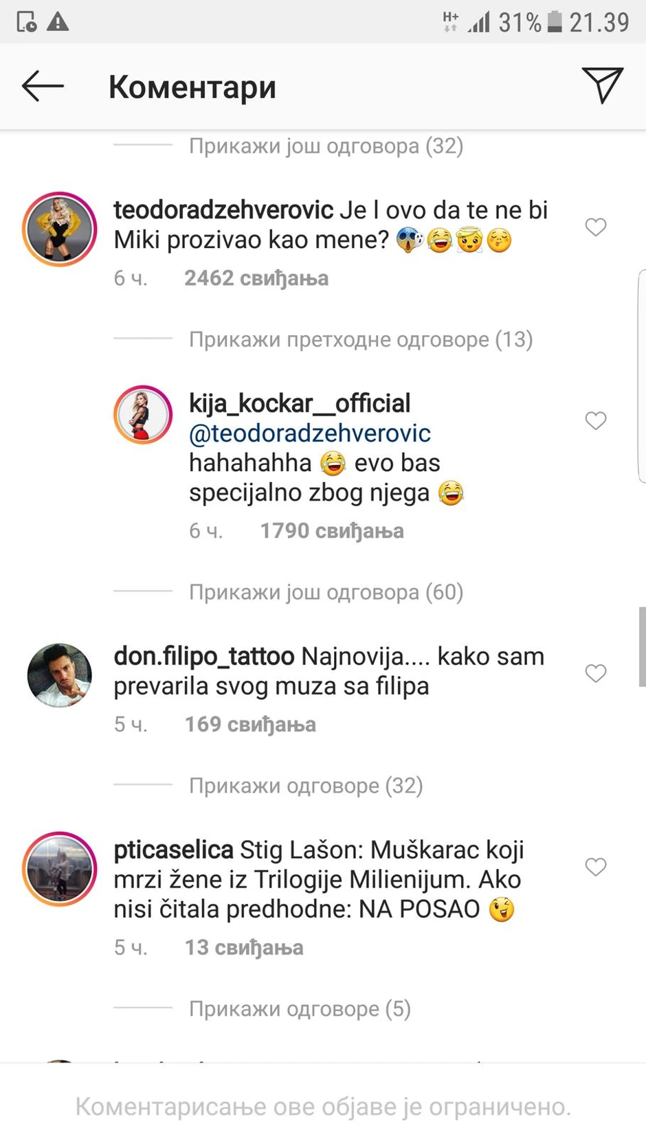 Međutim, on od te tvrdnje nije odustao. Kija je na Instagramu upitala za pomoć, koju knjigu da čita, a odmah potom se oglasio i Filip, pokušavajući da je isprovocira.
