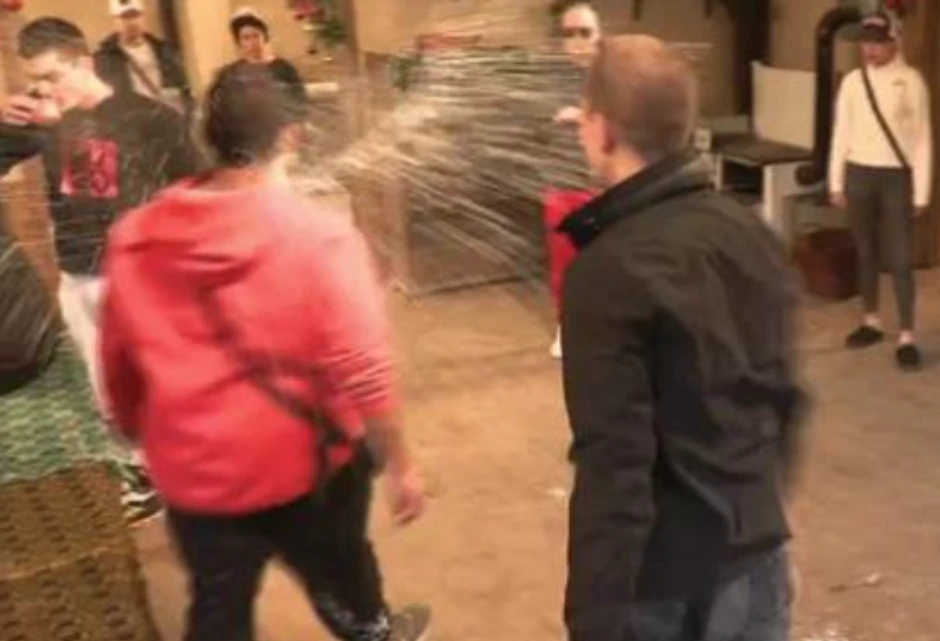 Oni su u jednom trenutku toliko počeli da se polivaju, da su ljudi oko njih bili šokirani. Stvari su letele na sve strane, pa je obezbeđenje opomenuo učesnike da slede i novčane kazne ako ne poveru računa o svom ponašanju i ako se ne primire.