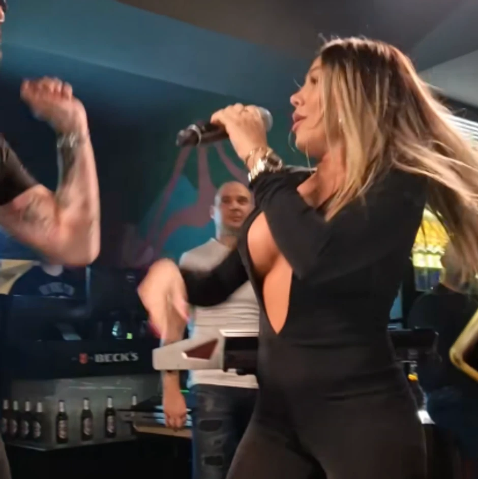 Naime, pevačica je za ovu priliku obukla crni kombinezon, a kako je godnji deo bio poprilično slobodan i otvoren, grudi je jedva uspela da obuzda.