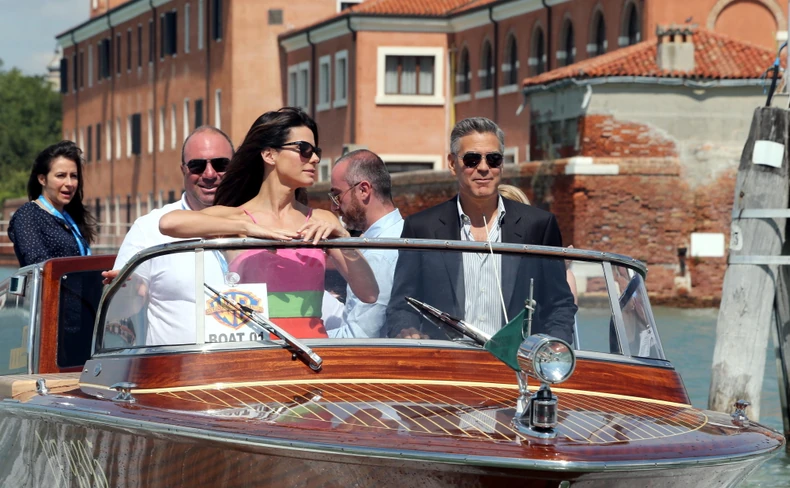 Kluniju u Veneciji društvo pravi njegov prijatelj Rande Gerber, a Sandra je povela sina Luisa, kog su fotografi slikali kako se vozi odvojenim čamcem.