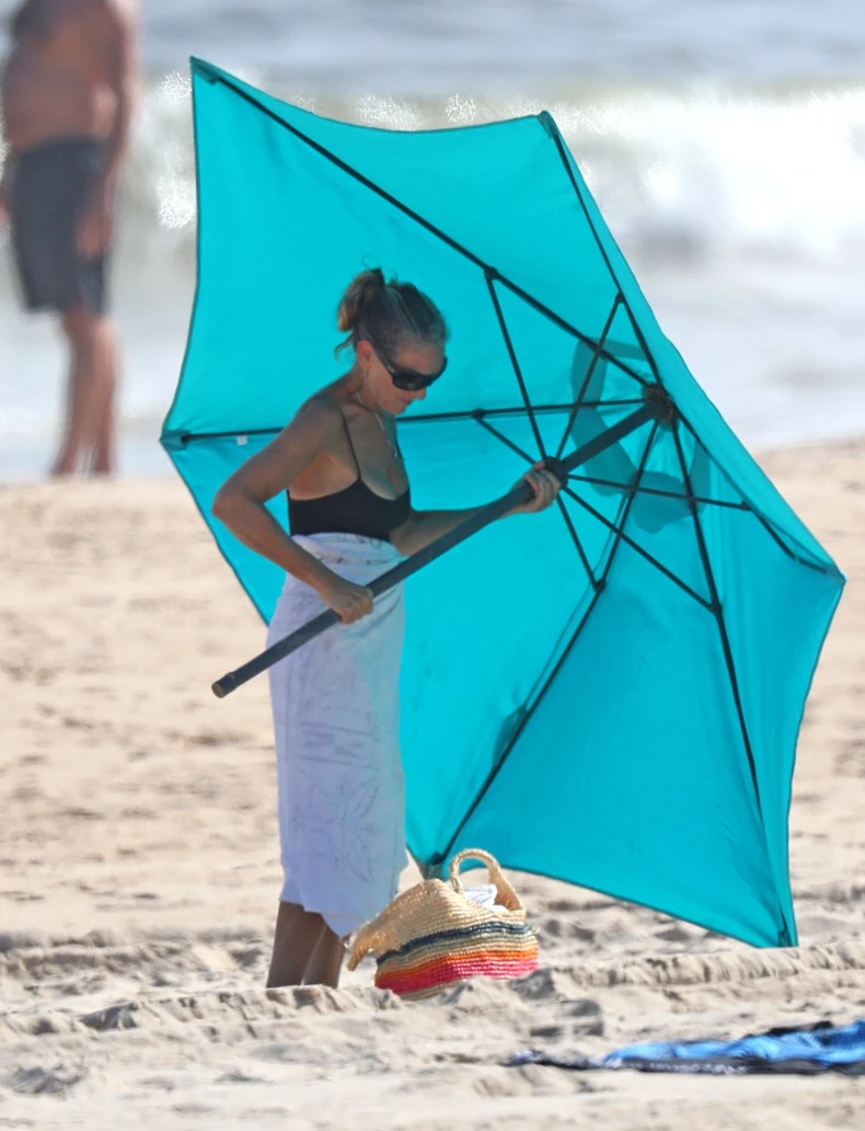 Iako je sve vreme držala zavezan peškir oko struka, može se primetiti kako i dalje ima mladalačku figuru, kao i izvajane noge. Ona se u nekoliko navrata na plaži namučila dok nije skupila suncobran, a očigledno je to da u blizini nije imala pomoć jače polovine.