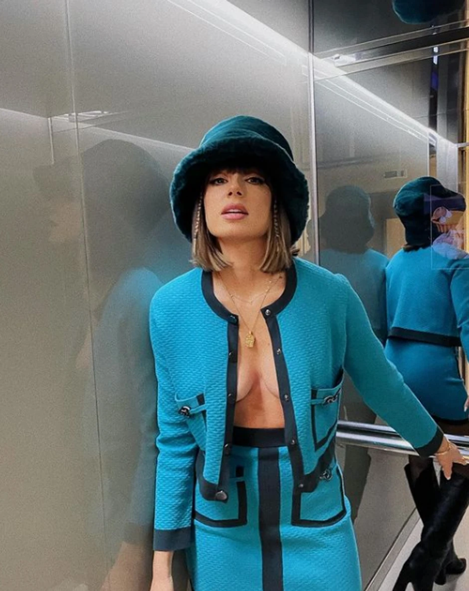 Tako je bilo i ovoga puta kada je na Instagramu objavila izazovnu fotografiju u kostimu. Ispod sakoa nije imala ništa, a mogle su se naslutiti njene bujne grudi.