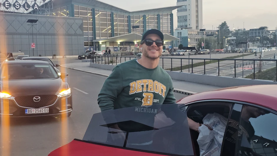 Pevač Saša Kovačević sleteo je danas na aerodrom Nikola Tesla posle nastupa, a ekipa Blica zatekla je pevača dok se vraćao kući.