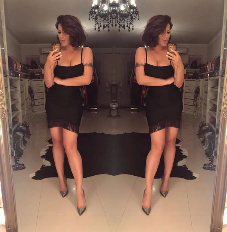 Seka je poslovno otišla na put, a nije mogla da odoli a da se ne slika ispred jelnke u predvorju hotela. Seka nosi malu crnu haljinu, seksi čizme i kaput, a frizuru je uskladila sa stajlingom. Seksi, nema šta.