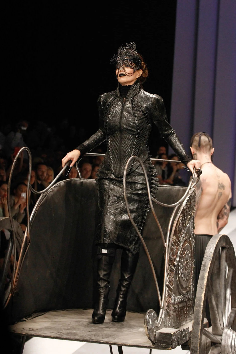 Pevačica se pojavila u kočiji koju je vukao istetovirani, polu-goli model koji je nosio brnjicu.