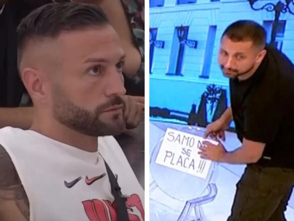 Đedović je doneo papir sa natpisom "Samo nek se plaća", što je rečenica koju je Mensur Ajdarpašić napisao na svom storiju kada se slikao sa Tarom Simov, a sve nakon što je reper platio Tarinu kaznu od 50.000 evra.