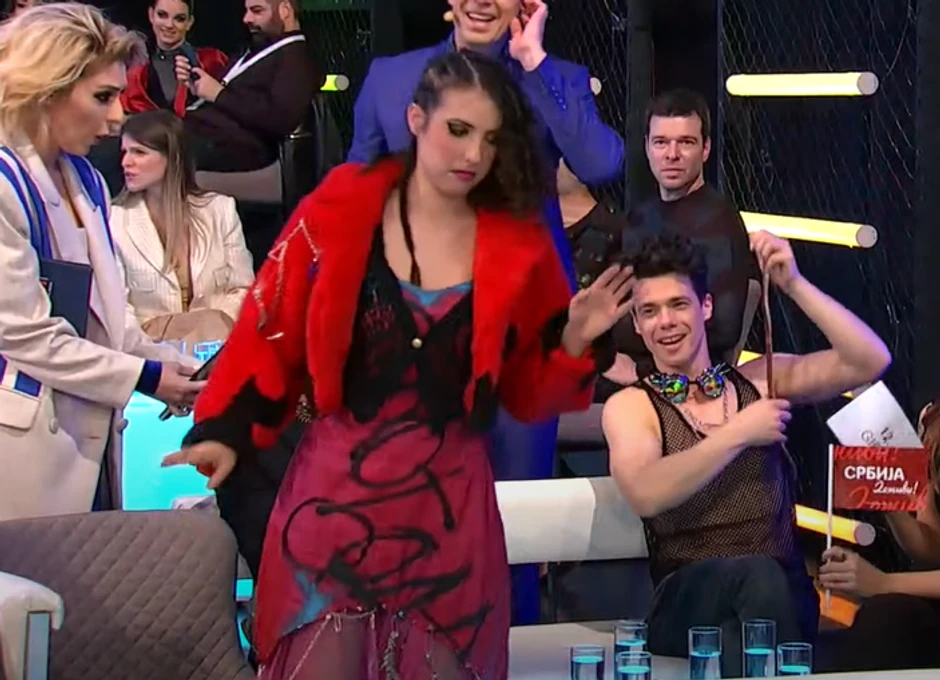 Iako je bila u pitanju igračka, devojka koja se nalazila do pevača se prepala, pa je demonstativno ustala i napustila svoje mesto.