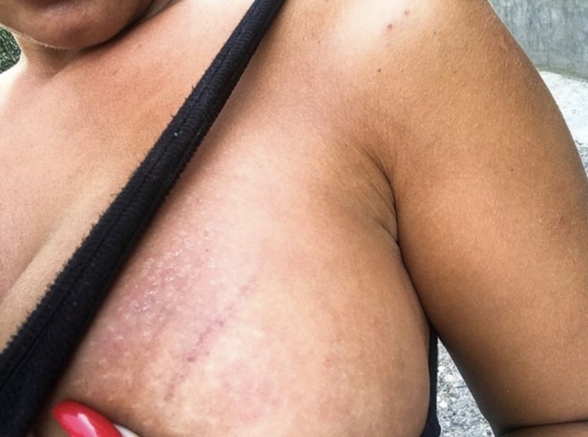 Aleksandra je na Instagram okačila fotografiju povreda na grudima i izveštaj lekara iz Urgentnog centra.