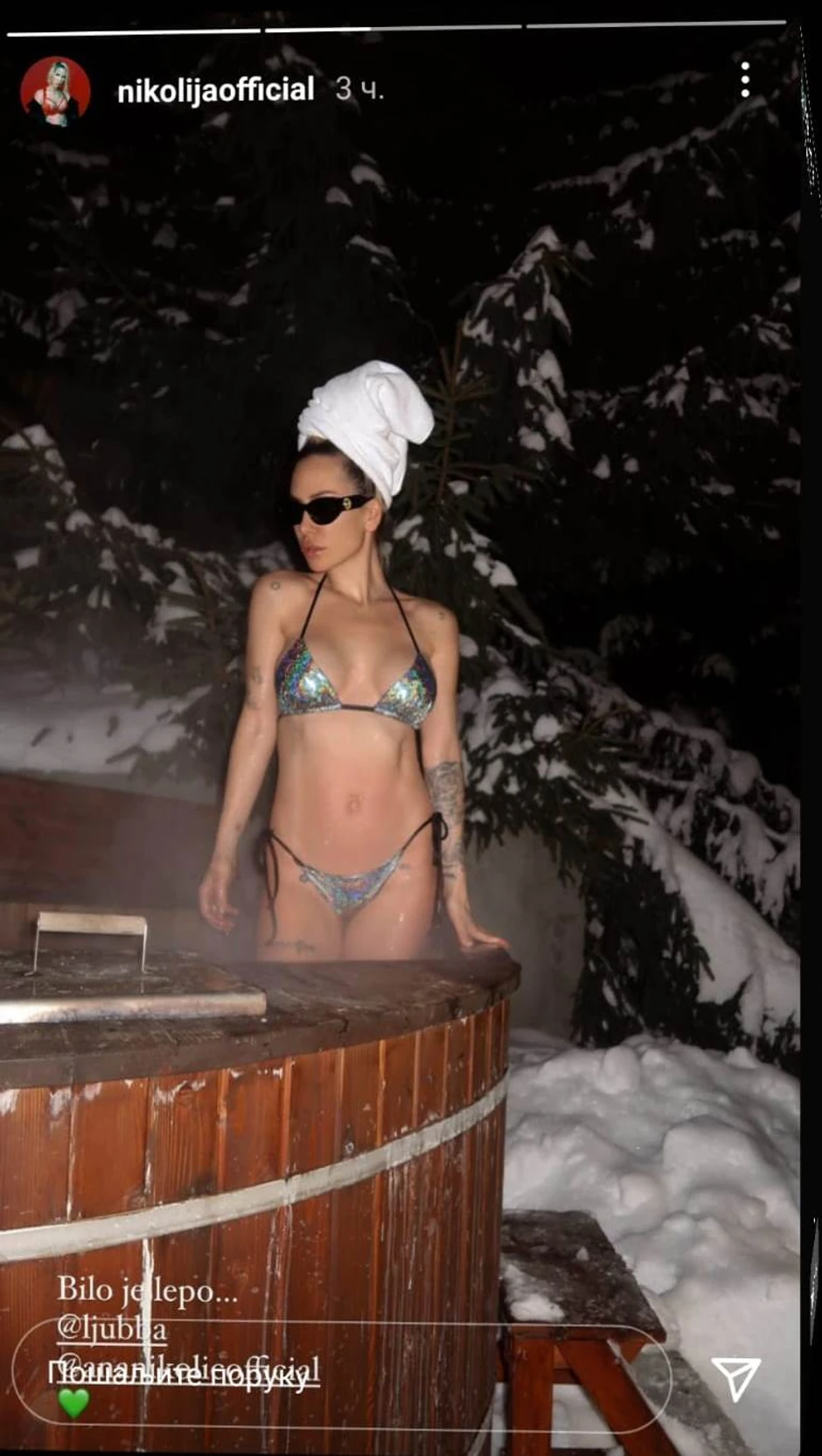 Nikolija je pozirala u bikiniji dok je ulazila u džakuzi sa peškirom na glavi, a oko nje je sneg. Njeni pratioci prokomentarisali su da su se smrzli kada su videli ovu objavu.