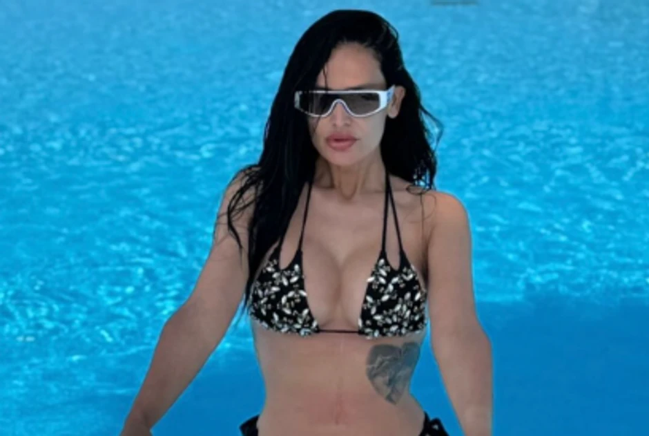 Pevačica je pozirala u minijaturnom bikiniju, u bazenu, a bujne grudi su bile u prvom planu.