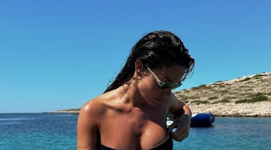 Ovoga puta, ona je pozirala dok izlazi iz vode, ma sebi je imala crni bikini, a u prvi plan su došle njene silikonske grudi kao i tetovaža na butini.