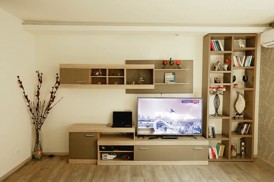 Spavaća soba je na spratu, prostran krevet i pastelne boje. Tu je i daska za peglanje, kako je Slađa rekla, "njena radna soba”.