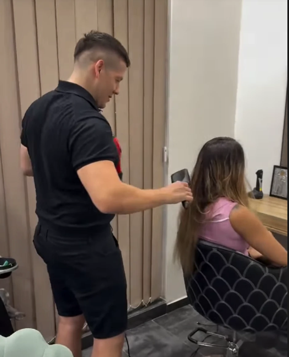 Sloba Radanović je na Instagramu objavio snimak na kojem u jednom salonu drži četku u ruci i fen. Ispred njega sedi Jelena kojoj on sređuje frizuru.