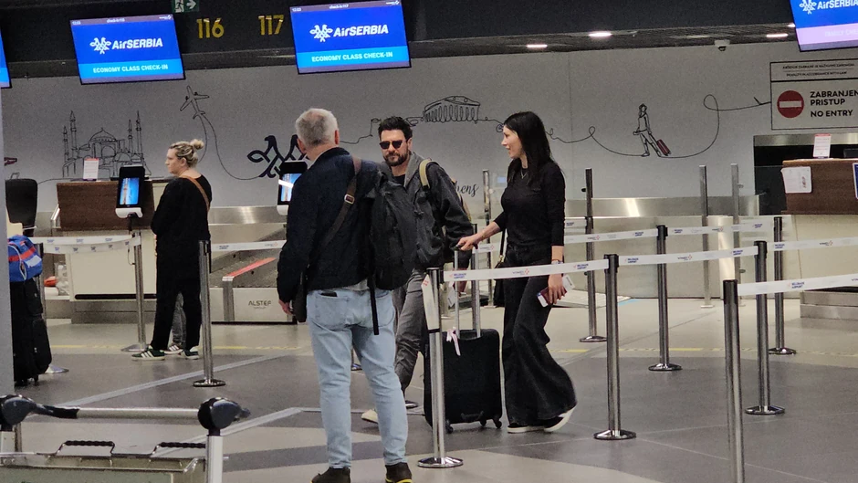 Glumicu Slobodu Mićalović zatekli smo na beogradskom aerodromu sa njenim kolegom Igorom Đorđevićem.
