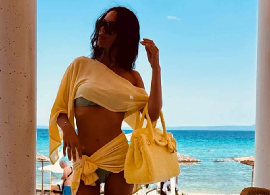 Ona je sada podelila fotografiju pre odlaska na plažu, dok je na sebi imala kupaći kostim koji je savršeno istakao njen ravan stomak. Preko grudi je ogrnula žutu maramu, a duge noge su bile u prvom planu.