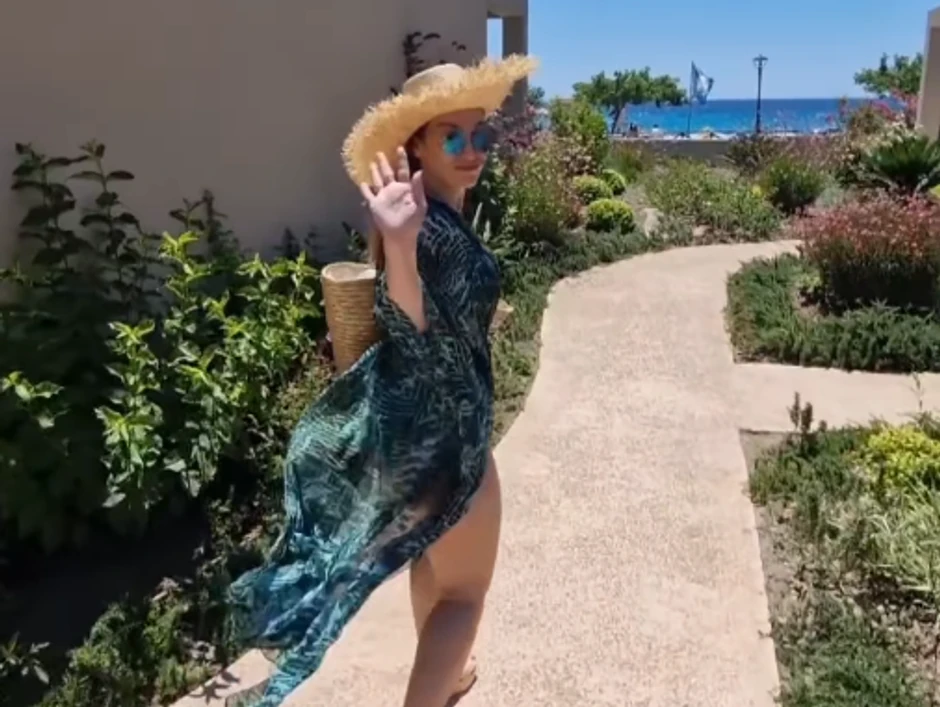 Pevačica se snimila u trenutku kada su krenuli na plažu, na sebi je imala dvodelni kupaći kostim i ogrtač, šešir na glavi i naočare za sunce dok ju je Ivan snimao.