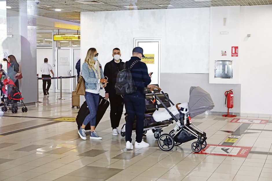 Ekipa “Blica” uslikala je manekenku i fudbalera na aerodromu kako sa sinom Aleksejem stižu u Beograd. Razlog ove kratke posete je isključivo da bi se videli sa porodicama i završili poslovne obaveze.