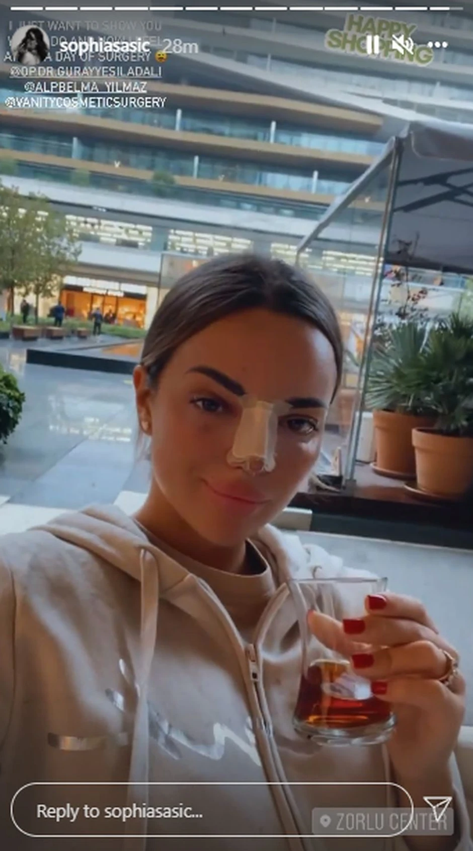 Sofija je objavila kadrove nakon operacije, na kojima se vide otok i modrice oko očiju, a preko nosa ima flastere i zavoj.