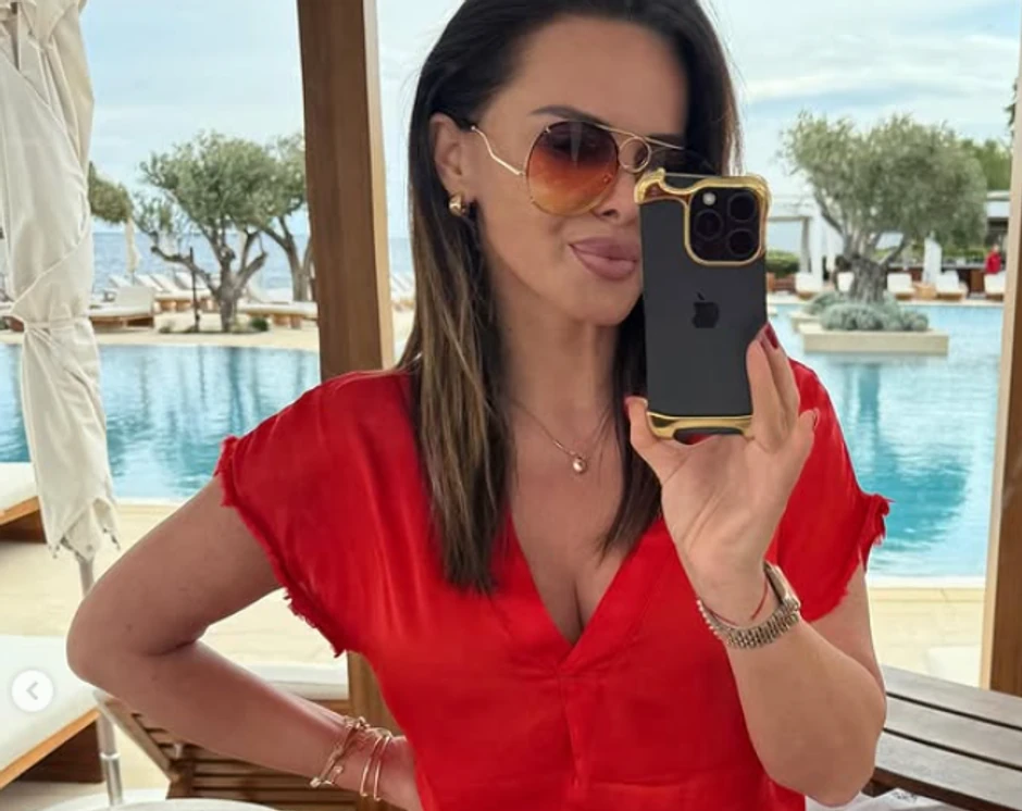 Sada je ponovo podelila fotografiju sa putovanja, a ovoga puta bila je u crvenom kompletu koji je isticao njeno telo. Gornji deo imao je duboki prorez, te je njen dekolte došao u prvi plan.