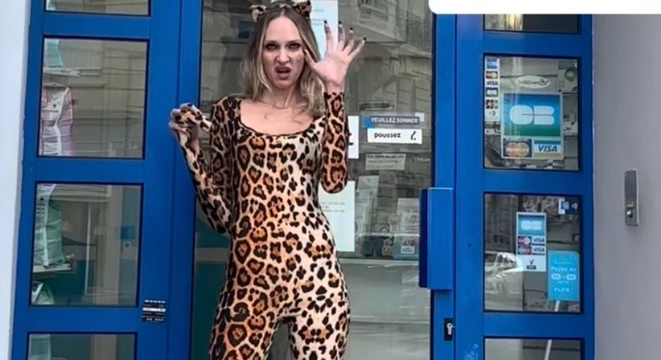 Naime, Anika je u kombinezonu sa leopard printom, mačjim ušima na glavi i repom prošetala ulicom na visokim štiklama dok su se prolaznici okretali za njom u čudu.