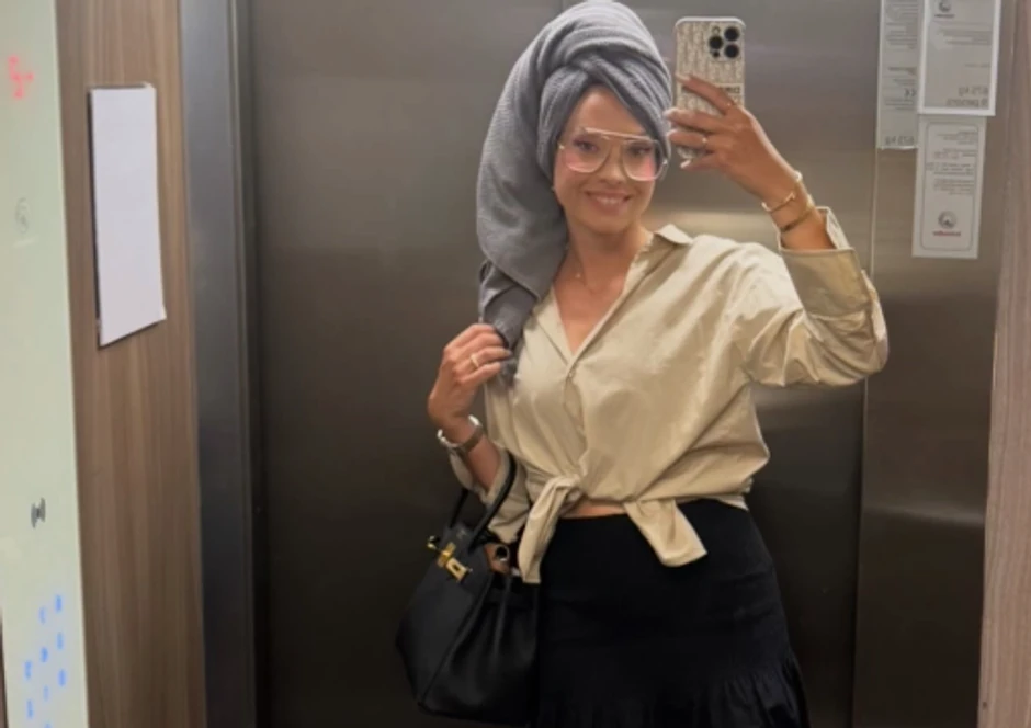 Naime, kako nije stigla da se spremi kod kuće, Mirka je na snimanje emisije krenula sa opranom kosom i peškirom na glavi, obukla je košulju i sulnjicu, pa je tako pozirala u loftu. Ponela je i ogromnu kesu sa stvarima, a samo je kratko napisala: "Spremanje za snimanje emisije".