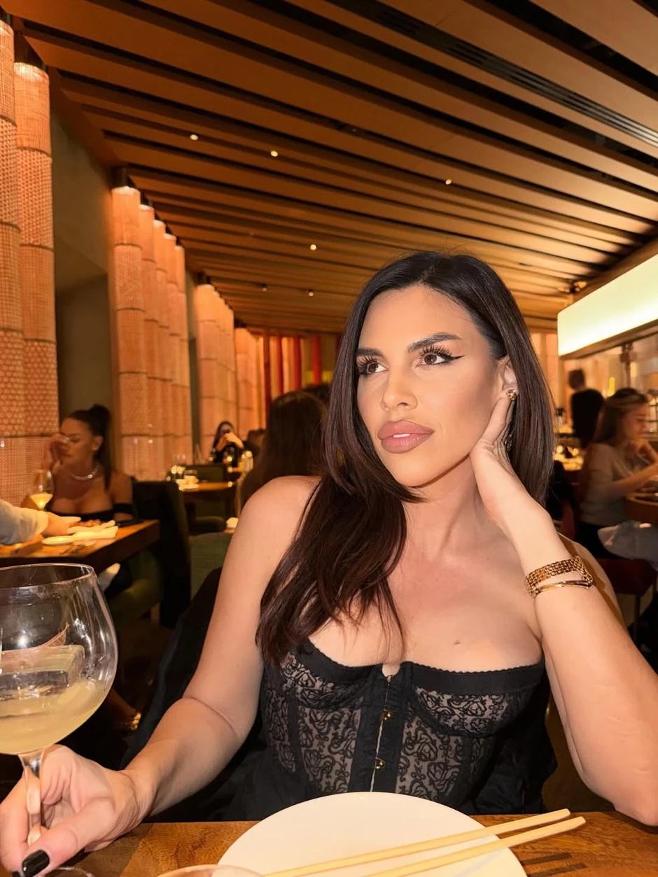 Naime, Kaja je objavila sliku iz restorana na kojoj je vidimo kako pozira u crnom, lupkanom korsetu dok osmeh ne skida sa lica.