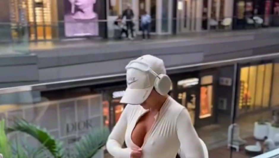 Nameštala je grudi, a onda i mešala zadnjicom na pokretnim stepenicama, sa sve osmehom na licu.