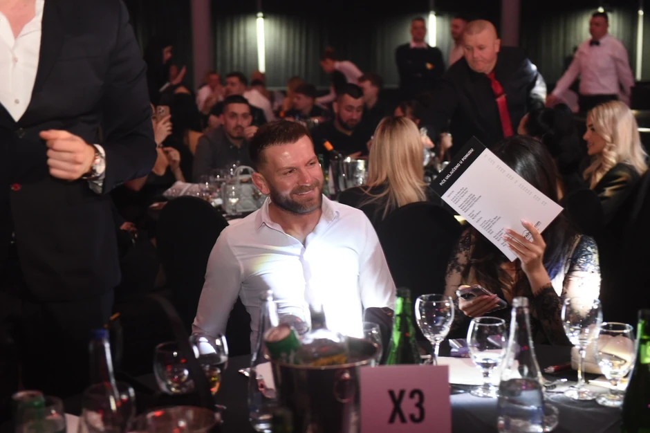 Stanislav nije skidao osmeh dok se njegova devojka, u koju su sve uči bile uprte, krila od kamera.