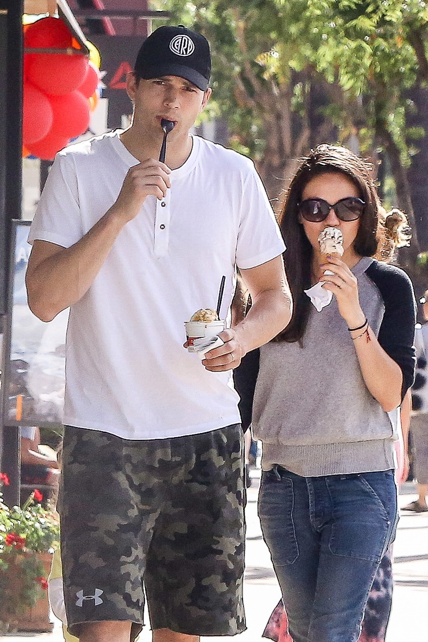 Ešton i Mila viđeni su pre samo nekoliko dana kako jedu sladoled, a glumica je prekrila stomačić širokom majicom, pa niko nije mogao da pretpostavi da je trudna.